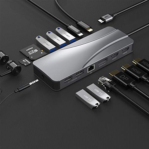 reddit USB C Hub,Rocketek 14 in 1 Triple Display Type C Laptop Docking Station with 2 HDMI,DP,Type-C PD,USB-C Port,Gigabit Ethernet,3.5mm Audio,SD&TF Card Slot,5 USB Port Compatible for Mac Book&USBC Laptop